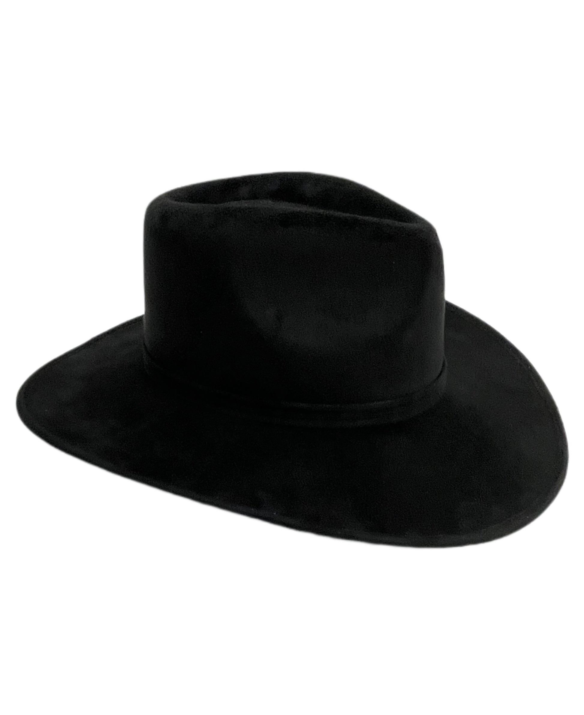 Introducing the Billy Hat, the perfect boho cowboy hat for anyone who loves a touch of fun and style. With a 4" teardrop pinch front crown and a 3 1/4" curved brim, this faux suede unisex hat is sure to turn heads. Plus, the elastic band inside allows for a perfect fit for multiple sizes (56cm-59cm). Get ready for compliments!