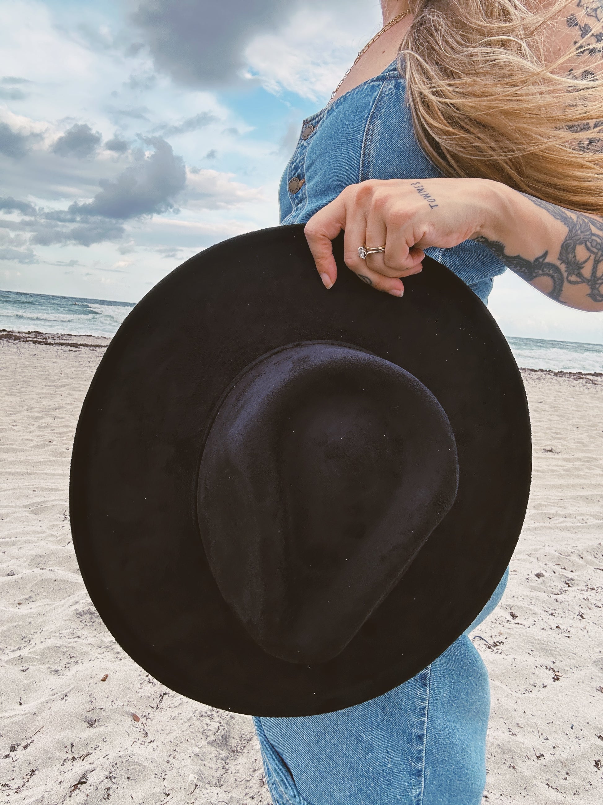 Introducing The Barrel Hat. Stylish and versatile, with a pencil brim, faux suede material, and unisex design. Featuring a 4" crown and 3 1/4" brim along with an elastic band providing a comfortable fit while ensuring a perfect fit for head sizes 56cm-59cm. This hat is perfect for those who want a versatile and trendy boho accessory.